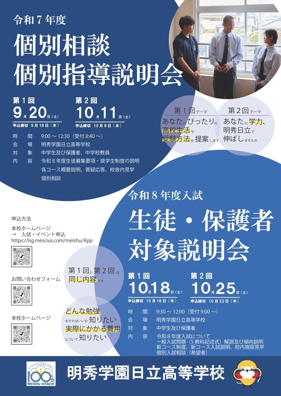 - 面談会場は明秀学園日立高等学校となります。ご来校の際にお車をご利用の際は来客駐車場をご利用ください。