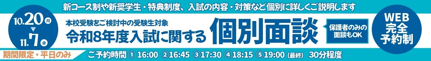 - お申し込みの際は、必ず中学校の先生に事前面談を受ける旨をお伝えください。
