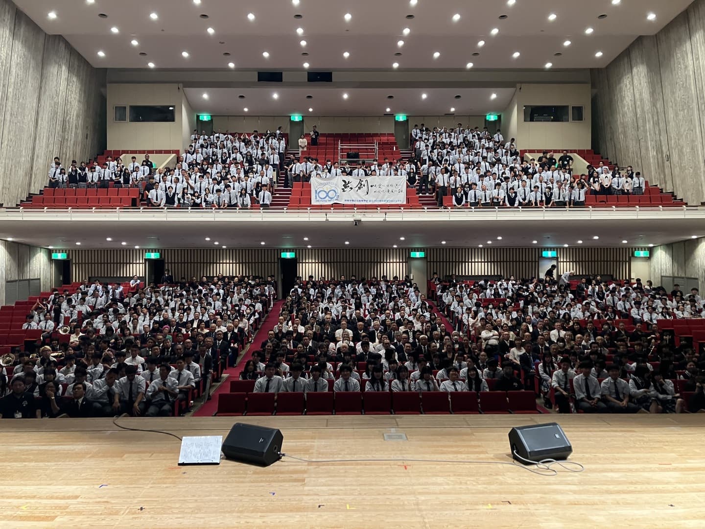 2025年9月5日(金)、明秀学園日立高等学校は創立100周年を迎え、日立市民会館 大ホールにて記念式典および祝賀会を予定通り開催いたしました。あいにくの雨天にもかかわらず、多くのご来賓の皆様、関係者の皆様、そして地域の皆様にご臨席いただき、心より御礼申し上げます。
