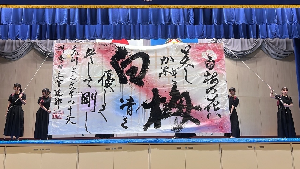 令和6年度実績 | 第29回全日本高等学校書道コンクール 全日本高等学校書道教育研究会賞 第65回全国書道展(大東文化大学主催) 特選 書道部秋の芸術ツアー(台東区書道博物館・東京国立博物館) 令和6年度茨城県高等学校総合文化祭美術展覧会書道の部 入選 第60回日立市美術展覧会 奨励賞 令和6年度明秀学園学校説明会パフォーマンス「白梅」 トウチ和LIVE2024〜書・華・箏〜パフォーマンス 晃耀祭オープニングパフォーマンス「願」 第46回全国公募千字文大会 特選 第40回高円宮杯日本武道館書写書道大展覧会 日本武道館賞 第58回高野山競書大会 準特選 |