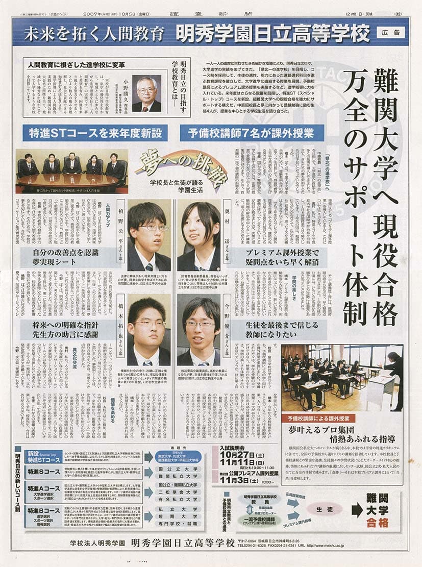 - 学科:普通科・別科、新刷中学併設